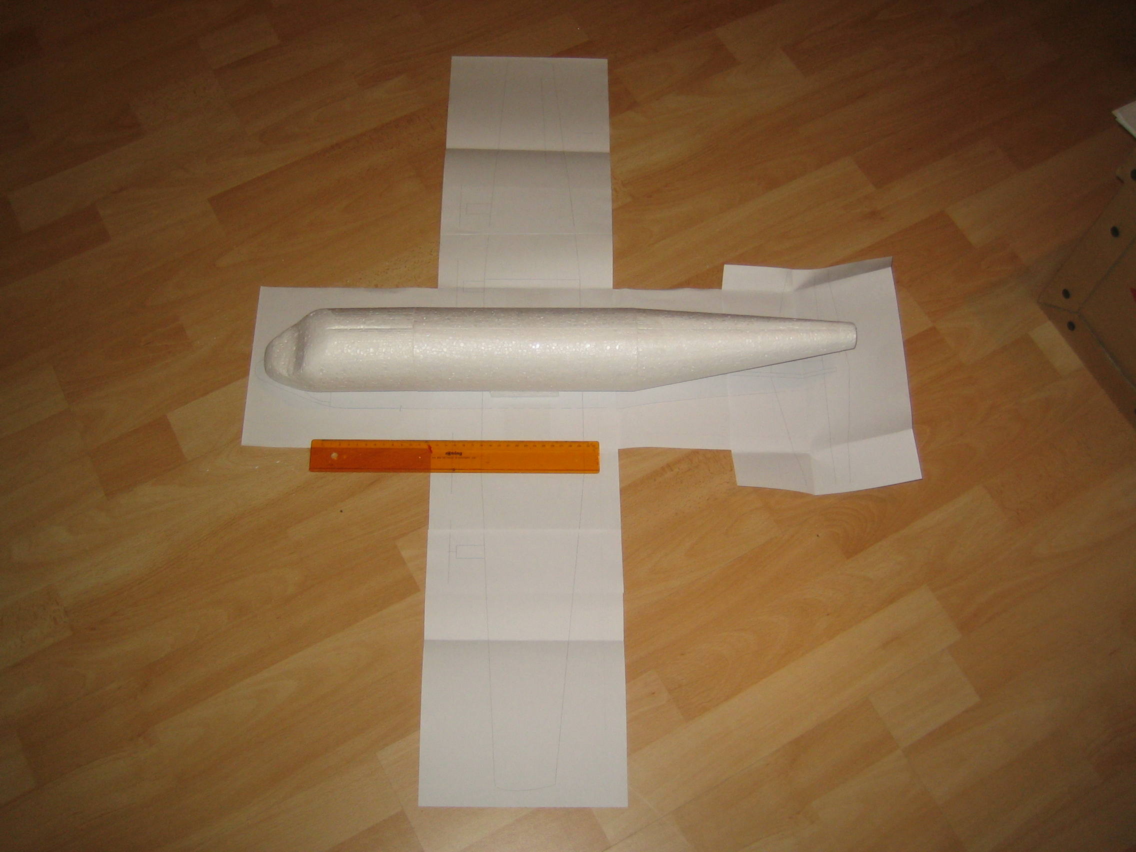Da es langsam Zeit wird auch ma lwas mehrmotoriges zu bauen, habe ich mich an den Bau einer C130 Hercules aus Styropor gegeben. Die Bau und Schnittpläne stammen von Team Ariane, sind jedoch um die Hälfte verkleinert worden. Das ganze soll später von 4 kleinen 5g Brushless Motoren befeuert werden.